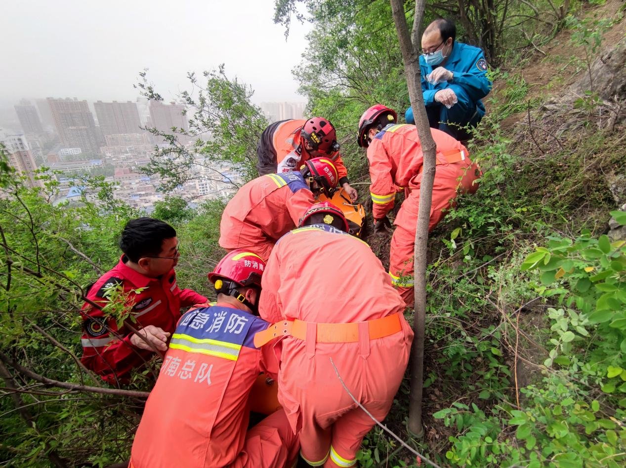 近日,洛阳市宜阳县消防指挥中心接到报警:有人被困在城关镇锦屏山深处,请求救援。该县兴宜路消防救援站消防员接警后立即赶赴现场,成功将被困人员救出。