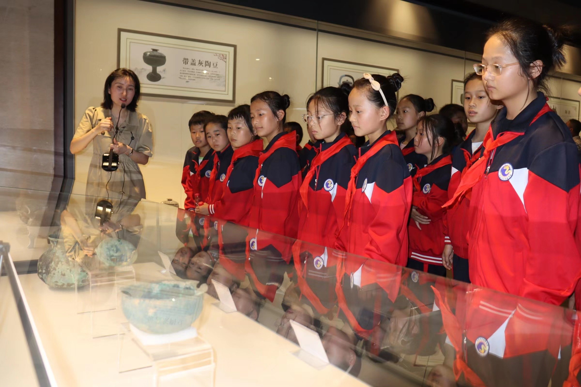 展出的文物有青铜器、玉器、陶器、铁器等;当天,安良镇玉龙实验小学的部分小学生应邀观展。(郏县县委宣传部供稿 张鸿雨)
