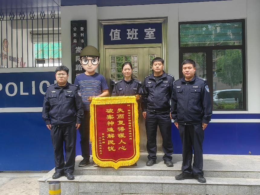 小案不小看,小案不小办,给足群众满满的“安全感”。近日,登封市公安局接连获赠锦旗,每一面锦旗的背后都承载着警民情深,赋予着群众的一份信任、认可与肯定。 5月3日下午17时,登封市公安局接110指令,报警人景先生称,5月2日晚上,停放在某小区门口一辆价值4000元的电动车不见了。接报后,嵩阳路派出所副所长张澍,带领民警张世广、辅警乔鹏飞、李东阳、屈梦丽等立即赶往现场开展调查,通过现场走访及周边监控沿线追踪,成功将嫌疑人抓获,并找回了被盗电动车。