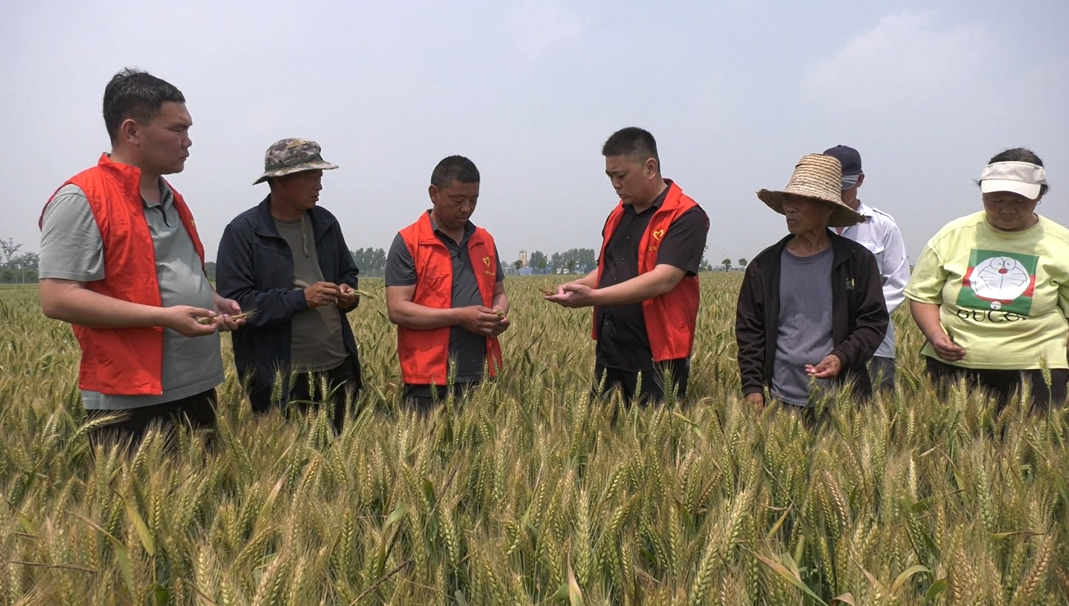 5月22日,在郏县薛店镇狮子口村千亩小麦种植基地里,郏县薛店镇科技志愿服务队一行正在田间观察小麦结穗情况,并一对一指导农户进行针对性管理,助力小麦丰收前最后阶段的田间管理。