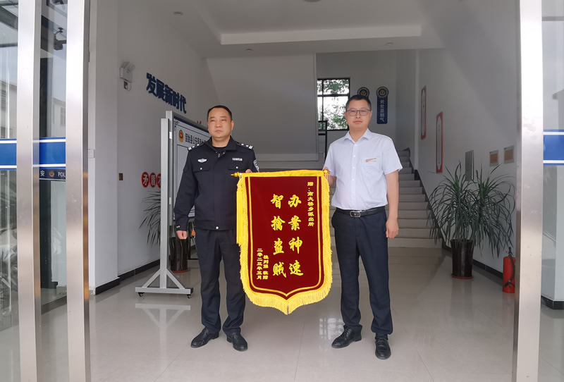 日前,固始农村商业银行(南大桥支行)工作人员来到固始县公安局南大桥派出所,将一面印有“办案神速,智擒盗贼”的锦旗送到民警手中,对民警及时高效破案表示感谢。