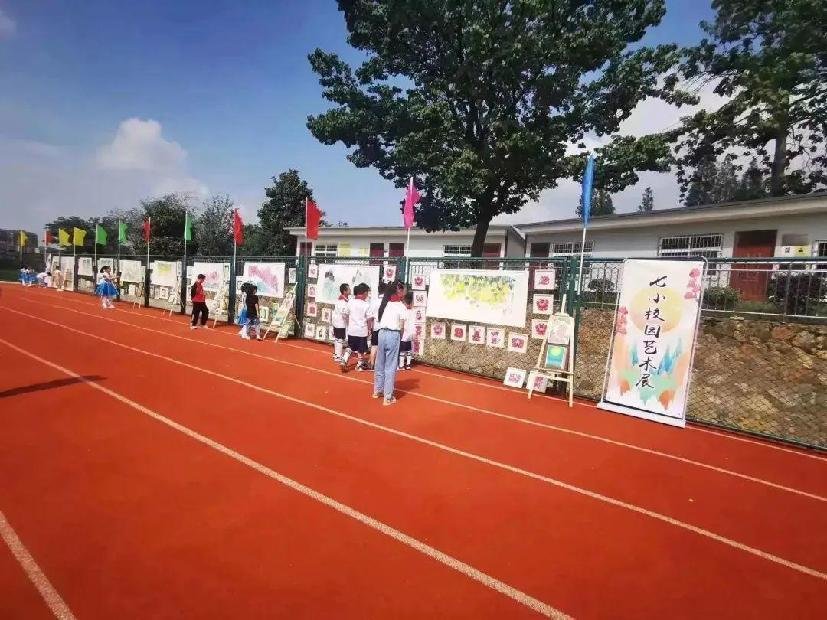 为庆祝今年六一儿童节,学校在操场四周布置了校园艺术展,所有展出作品都是南湾七小美术社团、剪纸社团以及有艺术特长的同学精心创作,为同学们带来一场震撼的视觉盛宴。