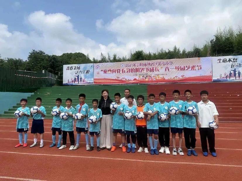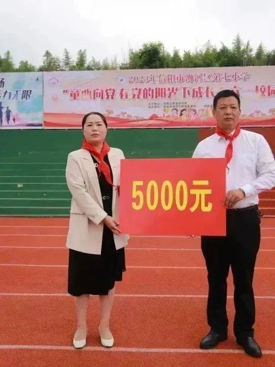 信阳市浉河区教体局副书记,副局长宋冉在百忙之中带着节日慰问品来到活动现场,为南湾七小在信阳市第七届"市长杯"足球赛中获得第五名的足球校队颁发礼品。
