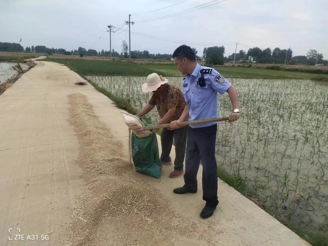 “黄大娘,别着急,我们来帮您了”。正当黄大娘筋疲力竭地搬运粮食时,关店派出所社区民警主动上门帮忙。原来,社区民警在近期走访时,了解到黄大娘儿女都不在身边,自己一人在老家生活,家中无其他壮劳力,便牢牢记在心上。特别是今日预报有雨,如果小麦被雨水冲泡,大娘这一年收成就化为泡影了,社区民警更不放心了,特意过来看看,正好看见大娘在“抢收”麦子。随后,民辅警们纷纷拿起扫把、木锨加入其中,在大雨来临之前将全部麦子收运回家。看着家中一袋袋装好的小麦,黄大娘激动地拉着民警的手再三表示感谢,民警憨笑着说:“咱们都是一家人,一家人不说两家话!”