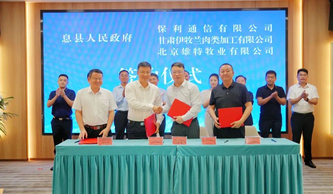 6月1日,县长管保臣代表信阳市息县人民政府与保利通信有限公司、甘肃伊牧兰肉类加工有限公司、北京雄特牧业有限公司在息商之家举行座谈会并签订战略合作协议。县领导张鑫、周民、曹永甲、刘创、刘波出席座谈会。