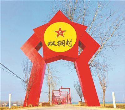 竖立在“双拥村”村口的双拥标识。王新华摄