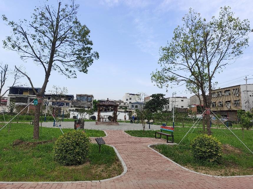 近日,走进位于郏县龙山街道大观堂社区民心路口新建成的公园,郁郁葱葱的树木生机盎然,月季花、喇叭花竞相绽放,三三两两的老人在古香古色的亭廊下聊天,孩子们在公园里嬉戏玩耍,附近的居民或在健身器材前锻炼,或沿着观景步道散步,享受着静谧与闲适的美好时光。