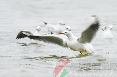 11月28日下午,记者来到白龟湖畔,远远就听到“啾啾”的鸣叫声。虽然天公不作美,天阴沉沉的,而且有风,但这并没有影响到红嘴鸥的活动。
