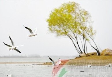烟波浩渺的湖面上,众多红嘴鸥时而展翅翱空,时而轻掠水面。淡雅的白羽及黑灰色的尾羽,构成了一幅唯美的水墨画。