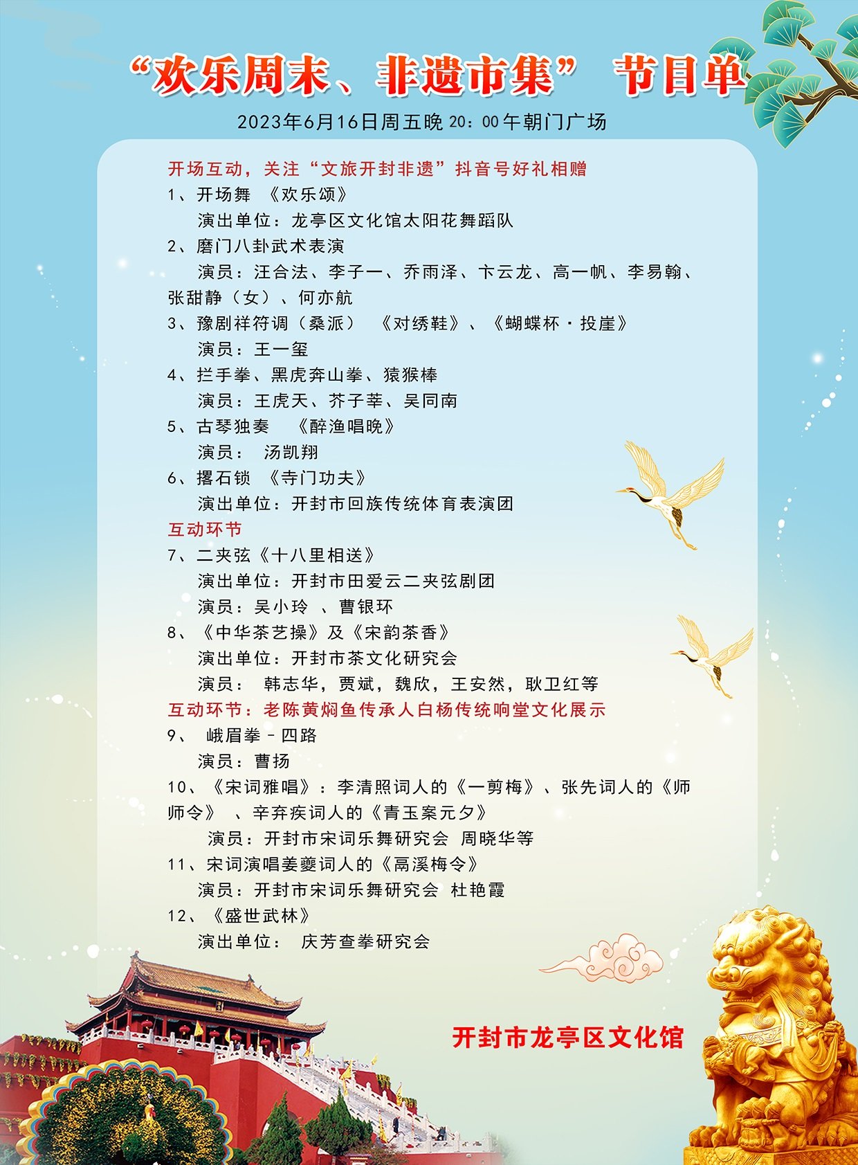 本周五晚,2023年“新时代 新征程 新风貌——欢乐周末”群众广场文化活动龙亭区专场,即将在此开启!