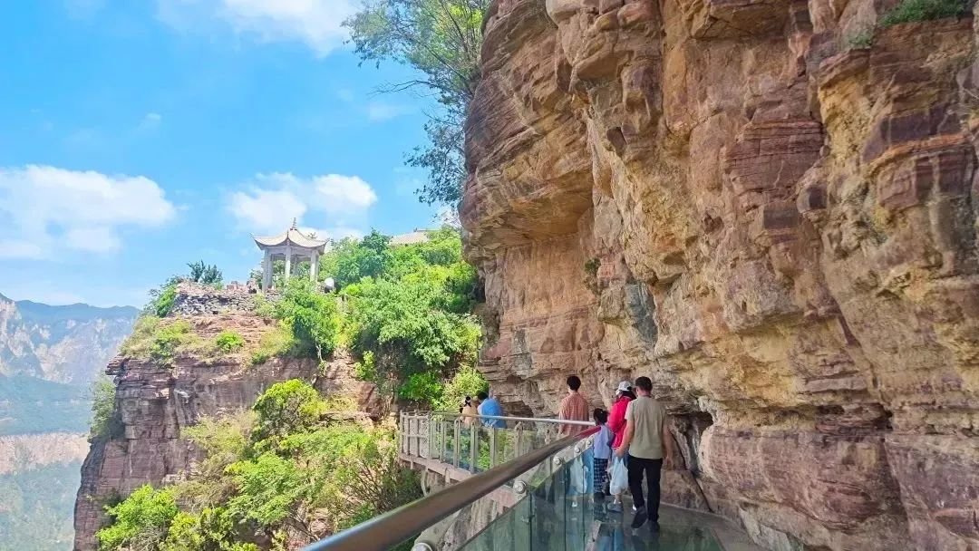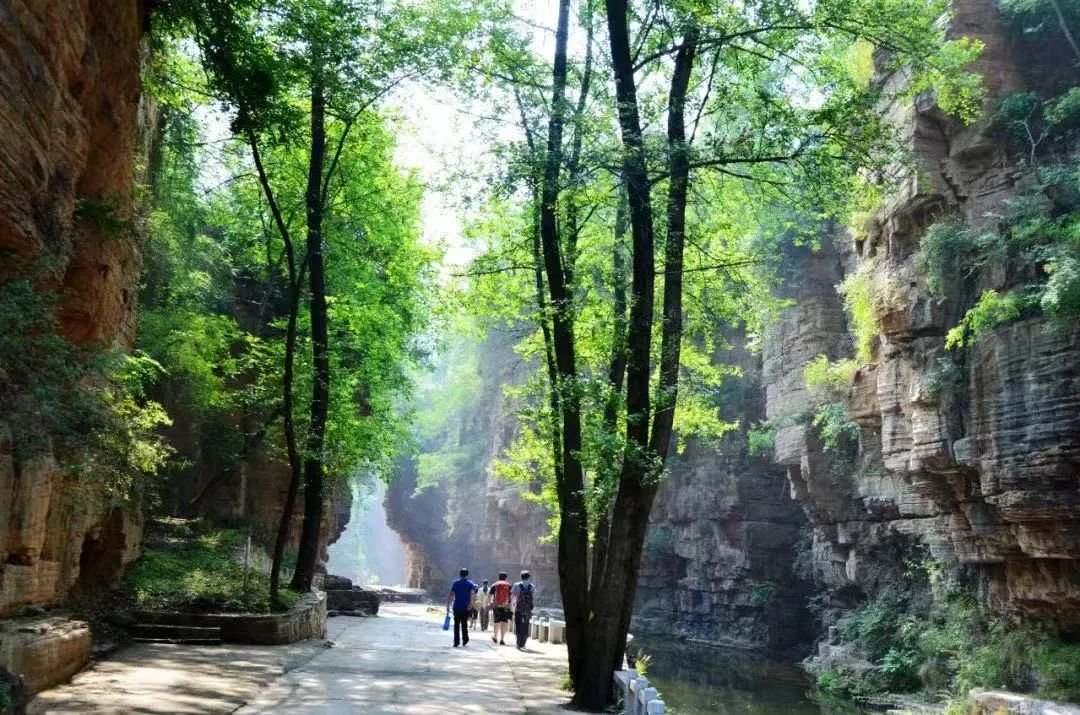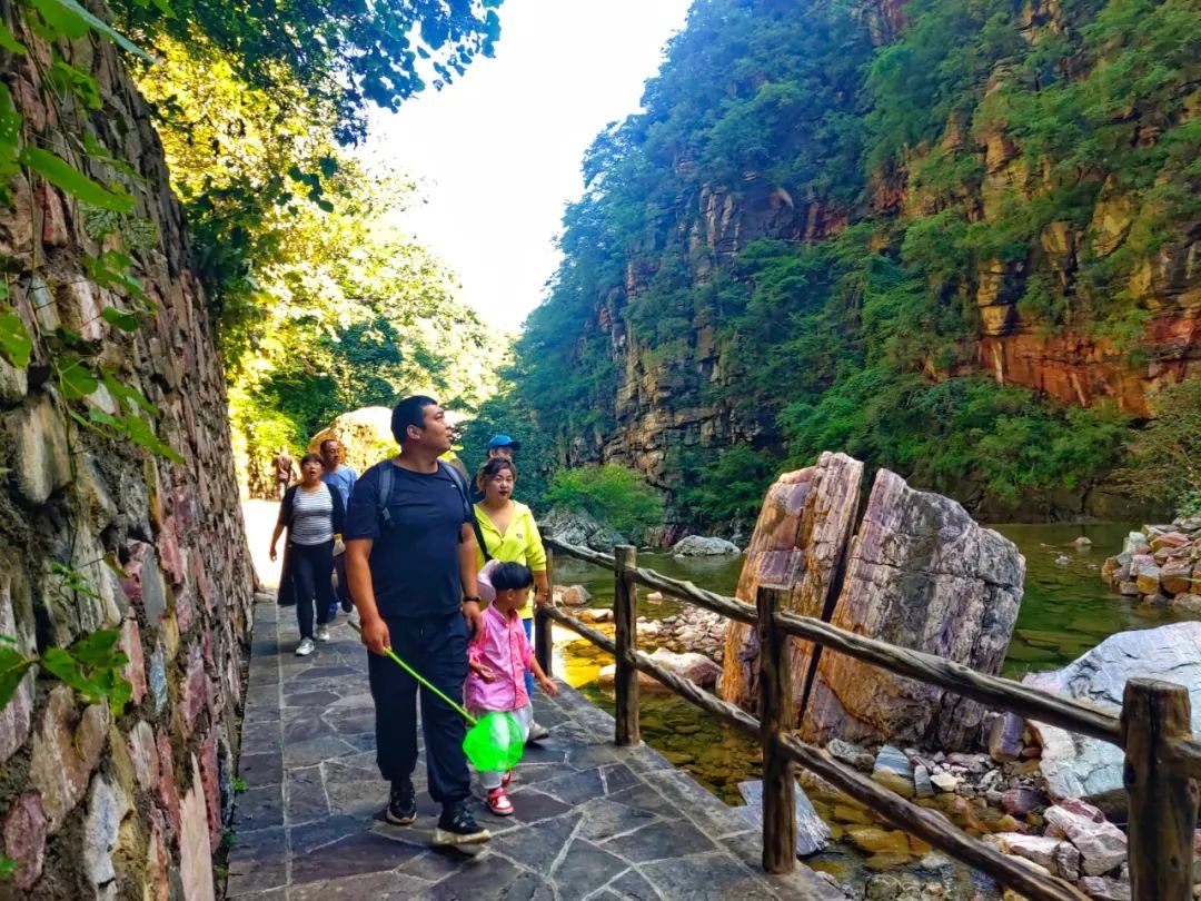 八里沟景区(八里沟·天界山·九莲山)是国家5A级景区,国家地质公园,国家级猕猴自然保护区。景区内沟壑纵横千姿百态,红岩峡谷千尺跌崖,清泉潺流、林木葱茏,是夏季极好的清凉之地,吸引了许多游客前来避暑游玩。