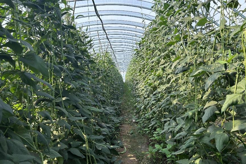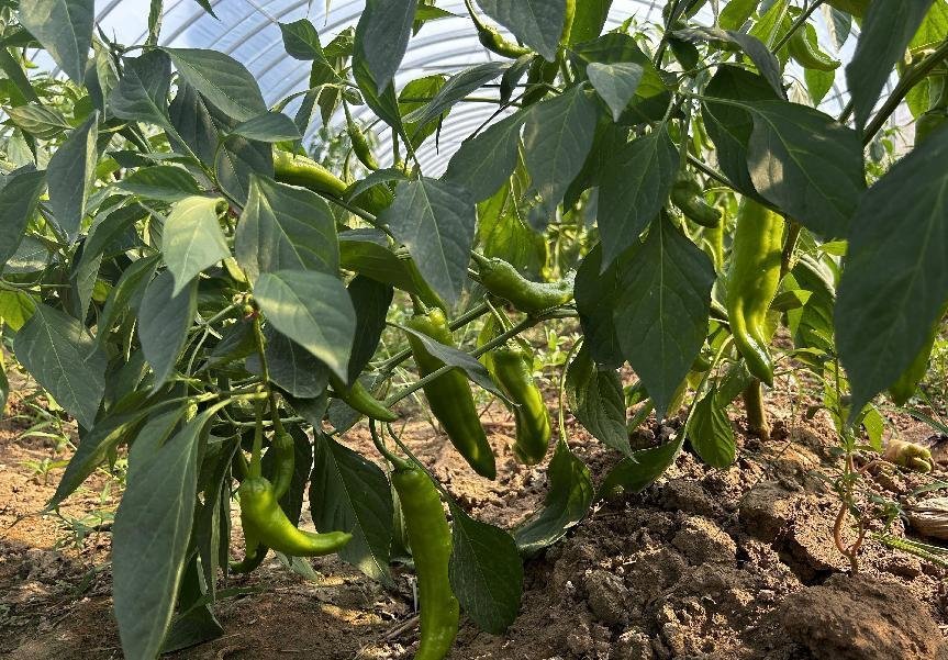 盛夏时节,蔬果飘香。近日,位于河南省平顶山市郏县堂街镇石桥店村的豆角、辣椒陆续成熟。大棚内一垄垄鲜嫩水灵的辣椒长势喜人,一根根翠绿饱满的豆角挂满枝架,菜农在采摘、分拣、搬运,脸上洋溢着丰收的喜悦。