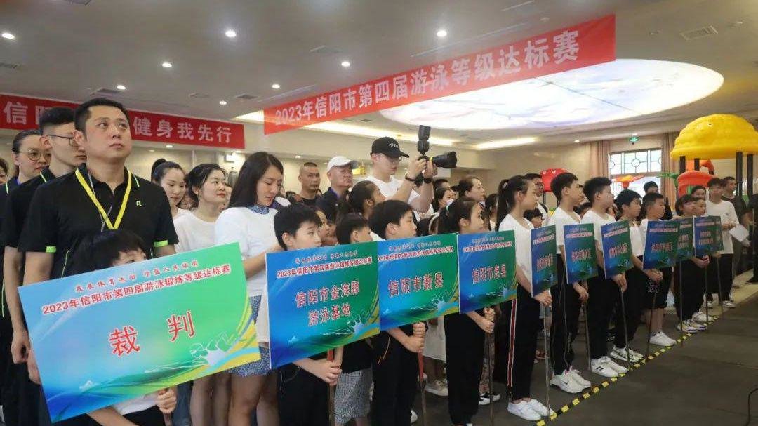 为深入贯彻落实全民健身国家战略,广泛开展全民健身活动,6月21日,由信阳市教育体育局、信阳市体育总会主办,信阳市游泳协会承办的2023年信阳市第四届游泳锻炼等级达标赛暨“发展体育运动,增强人民体质”题词71周年全民健身主题活动在金海豚游泳基地举行。