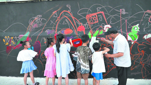 当天参与涂鸦的群众中,既有在外求学的美术专业大学生,也有幼儿园的孩子,还有热爱文化艺术的淇滨区退休老干部、中青年群众……在活动现场,他们在涂鸦艺术家的专业指导下,抱着对淇滨的一腔热爱,用沾满颜料的画笔在墙上尽情涂鸦。不一会儿,一面普通的墙在群众的奇思妙想中逆袭为“高大上”的“艺术墙”。