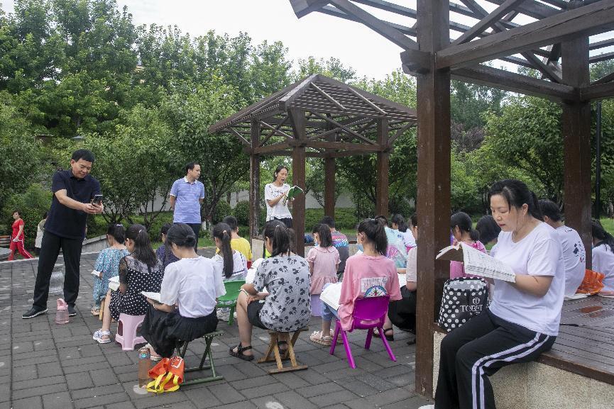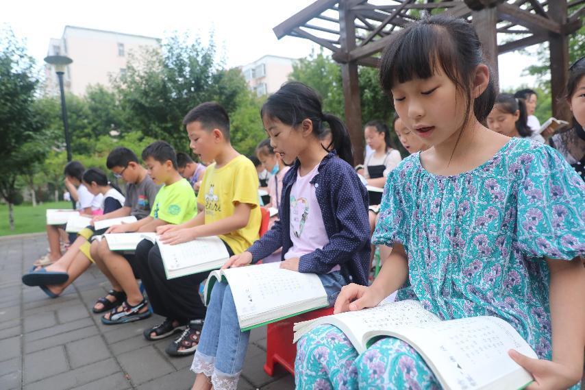 7月9日,早上6点半,在郏县人民广场,前来参加书香郏县暑期经典诵读活动的孩子们精神抖擞。