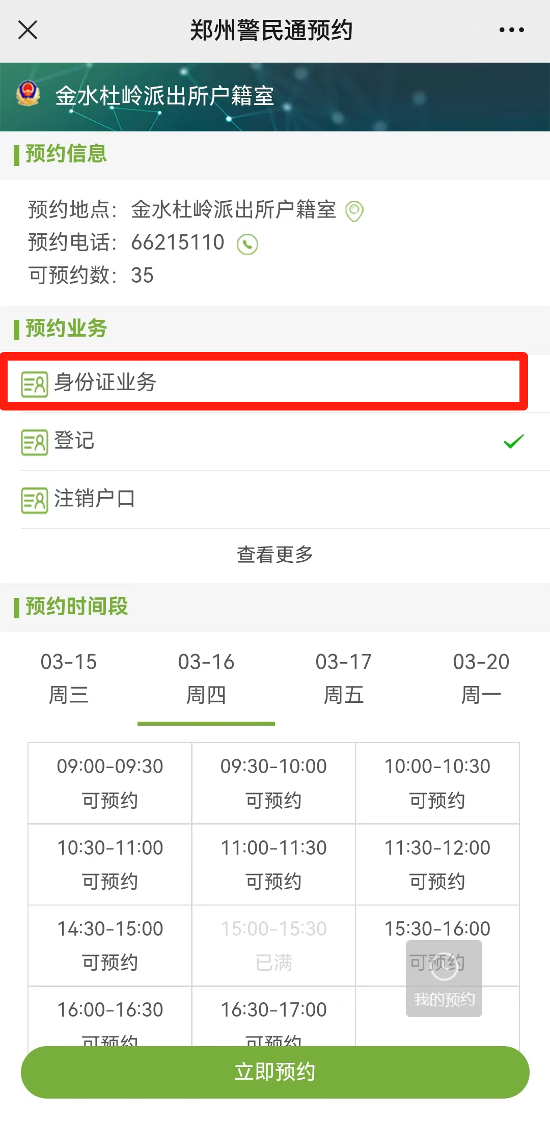 选择“身份证业务”,随后预约时间段。预约成功后到线下办理。
