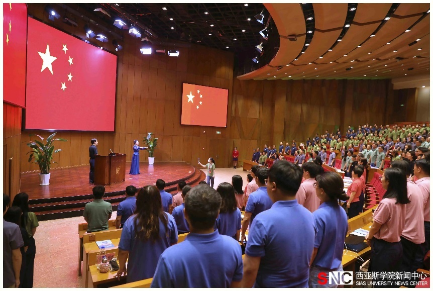 大会在庄严的国歌中拉开序幕。会上,全体参会人员观看了《深耕细作 2022—2023学年我们这样走过》和《点面结合 一起来看2023西亚斯招生工作》视频,共同回顾了学校2022—2023学年的重点工作和精彩瞬间,展望下学年的新征程。