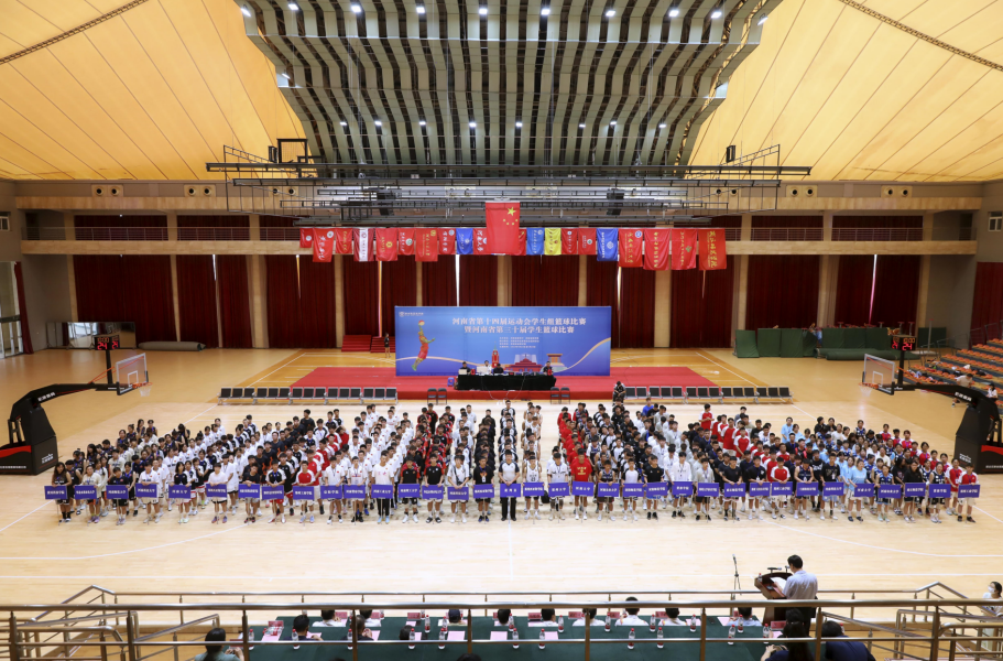 7月21日,河南省第十四届运动会学生组篮球比赛暨河南省第三十届学生篮球比赛开幕式在郑州西亚斯学院综合体育馆举行。