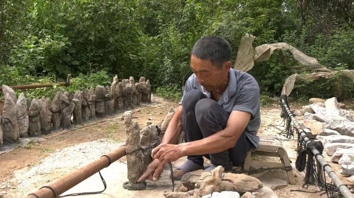 “刻一天是八个小时能刻两百块石头,一块两块钱。现在用机器刻得也方便了,也快,一天大概是400块钱。”郏县花涧园艺农场技术员高新科说。