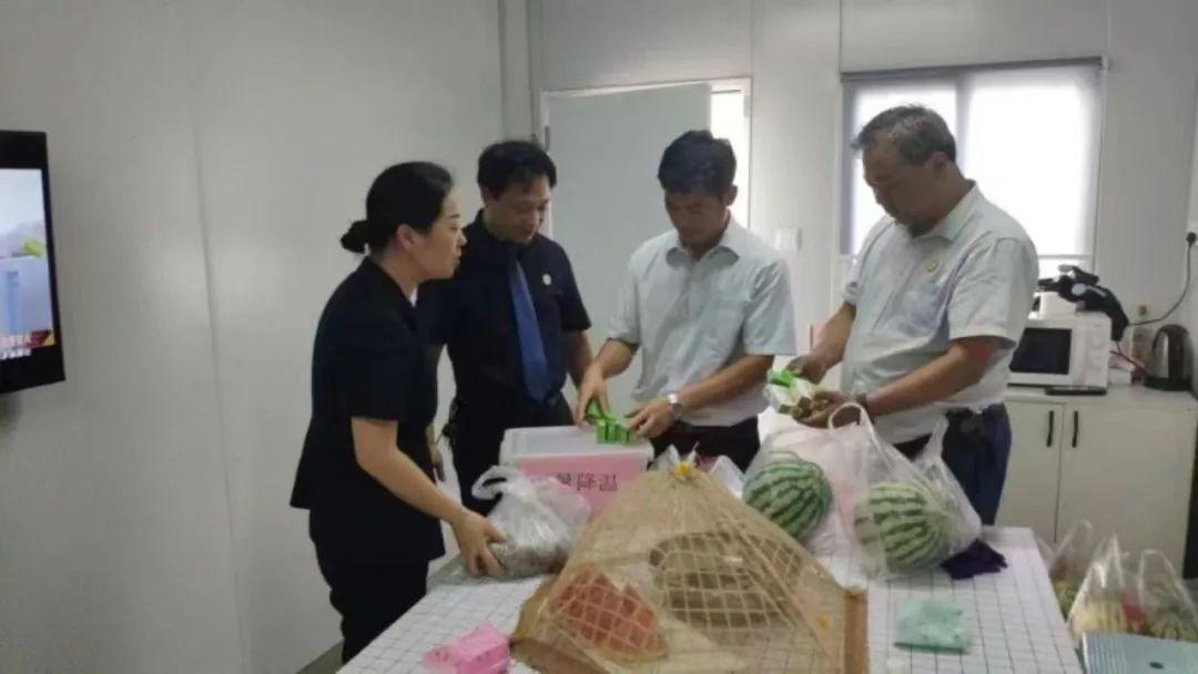 浉河宾馆党支部为一线工作人员送去西瓜、绿豆、清凉油等防暑降温物资。
