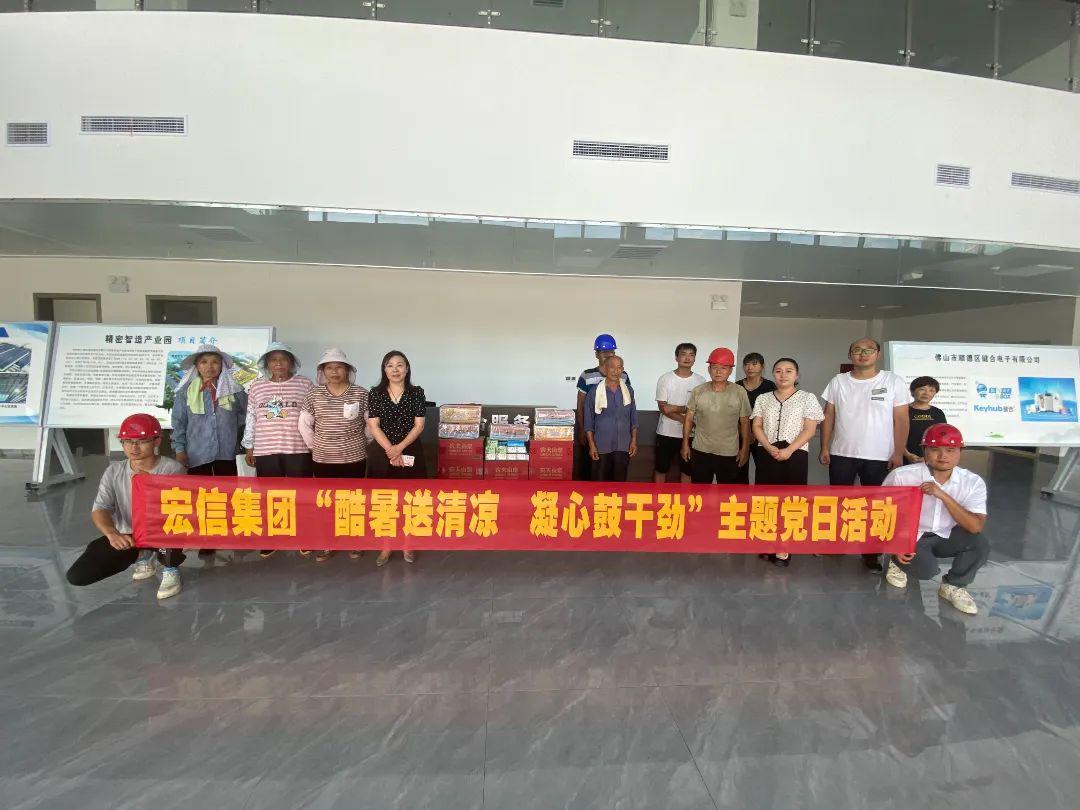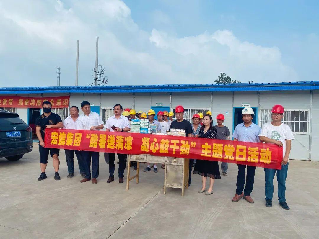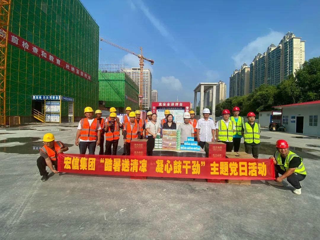 宏信集团第一党支部先后来到武警信阳支队新营区建设项目、信阳市公共卫生应急服务中心项目、精密智造产业园项目建设现场,为一线工作人员送上矿泉水、清凉油、十滴水、人丹及毛巾等防暑降温慰问品。