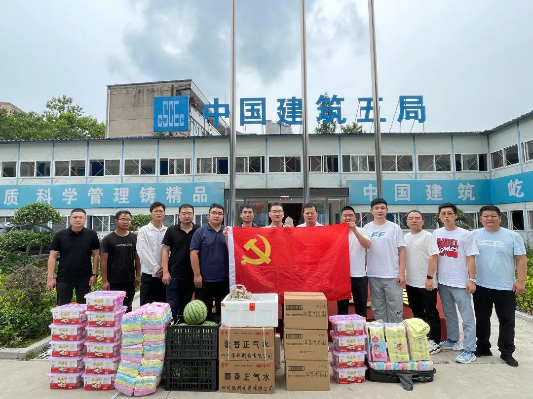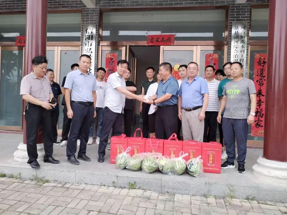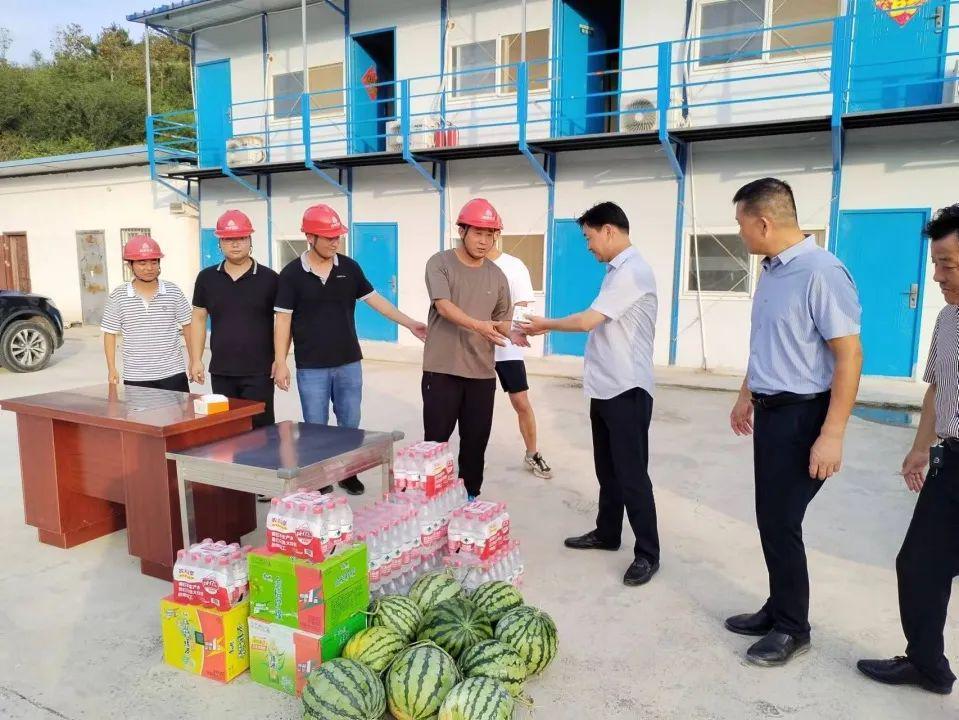 恒禹党支部为新县小潢河项目部、罗山引九济石项目部、新县青龙沟项目部一线人员送去了矿泉水、王老吉、西瓜、藿香正气水等防暑降温物品。