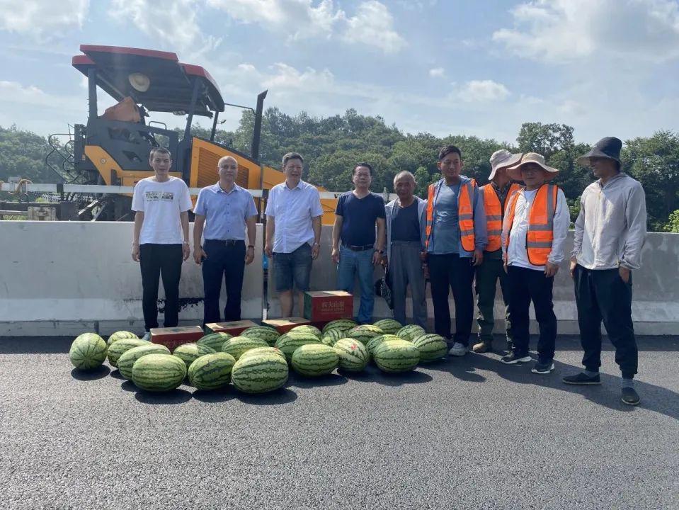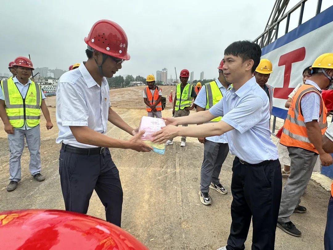 党委委员、副总经理蔡枫林为十一大街西段断头路项目工地送去了慰问品,感谢一线工作人员不畏高温酷暑的辛勤劳作,并详细了解断头路项目建设进度和施工中的重点难点。蔡枫林指出,项目管理工作人员要主动落实好劳动保护措施和防暑应急措施,既要保证工程进度,也要注重劳逸结合,切实维护好职工劳动安全健康权益。