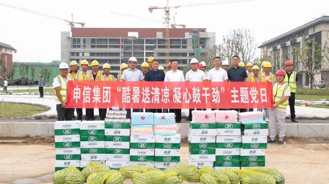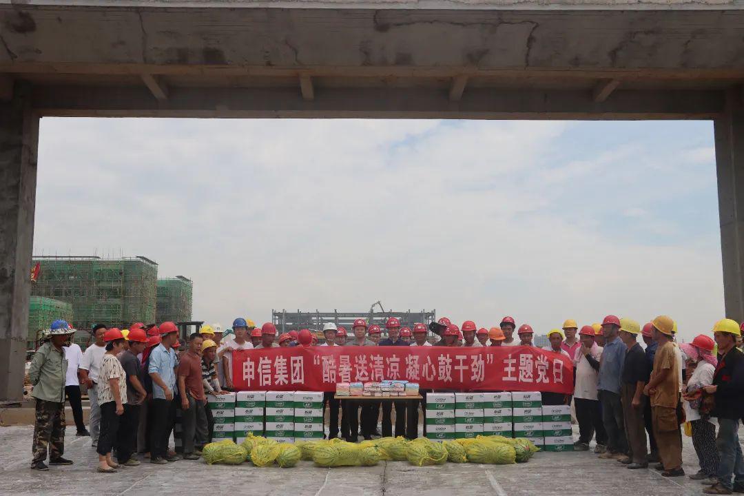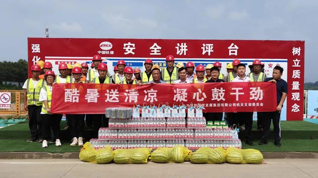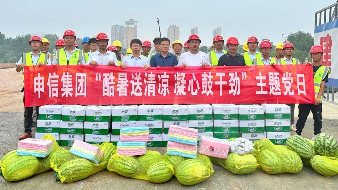 盛夏酷暑骄阳似火,项目建设如火如荼。为进一步做好高温天气作业劳动保护和安全生产工作,切实关心关爱广大一线职工,增进职能部门与项目一线交流协作,以党建引领助力项目建设攻坚,信阳申信集团党委部署开展了“酷暑送清凉 凝心鼓干劲”7月份主题党日活动,助力一线工作人员清凉度夏,为安全生产保驾护航。