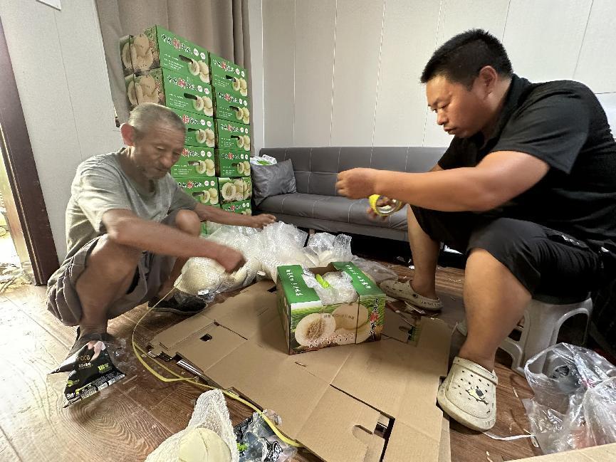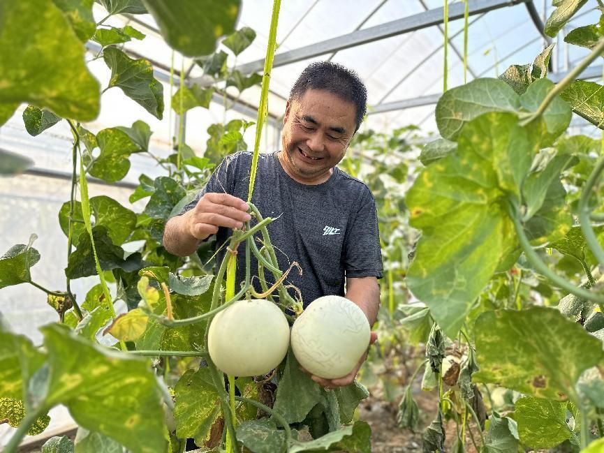 “这中原蜜瓜是我引进种植的第一年,刚开始怕种不好,就种植了5个大棚,没想到效果这么好,一亩地能收8000多斤,可以卖两万多元,吃起来也是肉厚质细,软糯香甜。”瓜农赵红卫高兴地说,“5月份的时候这几个棚才刚支起来,如今三个月不到,这瓜可长成了,个个都有三四斤重!”
