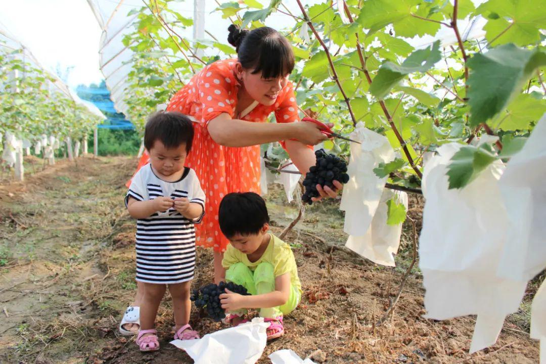 据陈红介绍,目前神农山庄瓜果蔬菜种植面积有三百多亩,其中葡萄有五六十亩,主要种植阳光玫瑰、夏黑、醉金香等葡萄品种。“打电话预订的特别多,每天能卖出去2、3百斤。目前又正值暑假期间,不少游客也带着小朋友自驾前来体验采摘乐趣,感受生态美味。”陈红说。