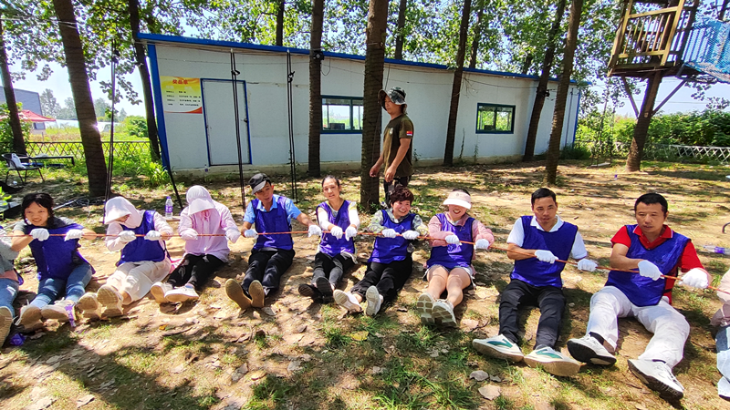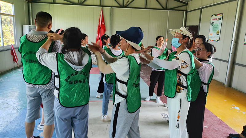 接下来的两天时间里,在拓展教练的指导下,员工们以各小队PK的形式依次开展了教练说、激情节拍、女皇圈、桃花朵朵开、驿站传书、信任背摔、空档接龙、动力绳圈等拓展项目。