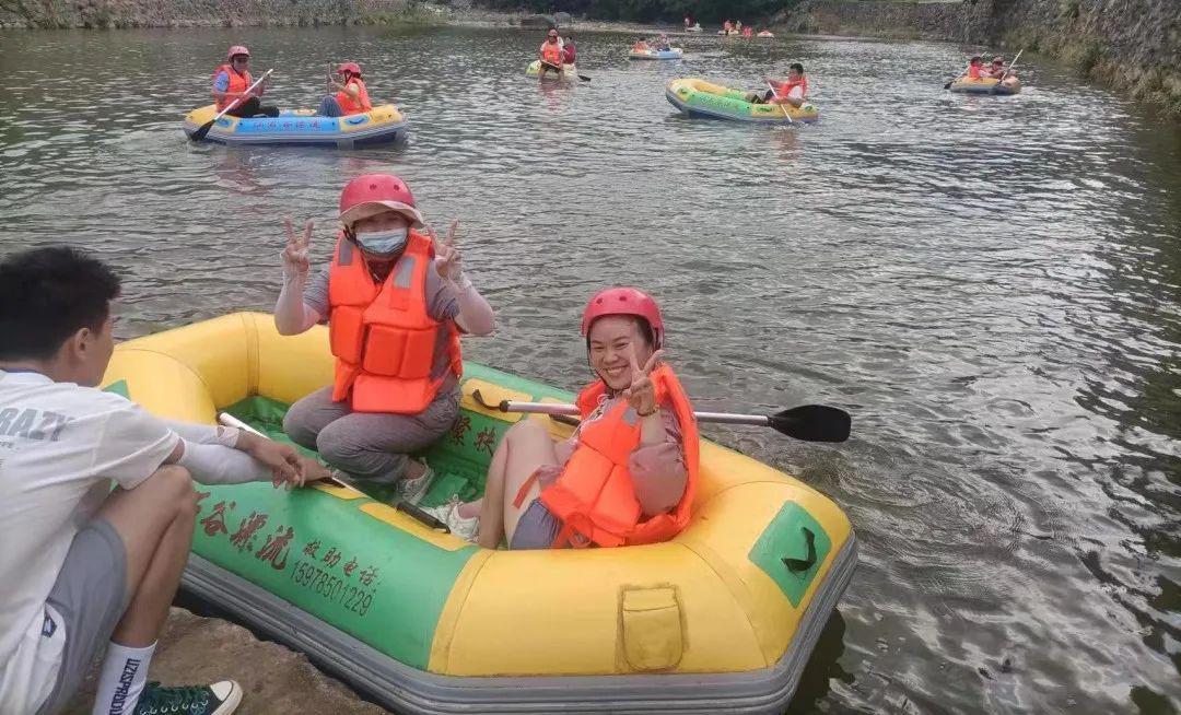 4号下午,4个小队全部抵达仙石谷景区进行漂流,仙石谷漂流景区位于河南省信阳市商城县苏仙石乡,景区内沿途两岸山峰多姿,河道蜿蜒,风景如画。漂流全长5公里,时长约2.5小时,树木成荫的水道跌宕起伏,顺流直下,时而急流澎湃惊险刺激,时而平缓如砥似荡舟西湖,徜徉于山水之间让大家尽情享受清新怡人的时光,员工们的阵阵欢笑声、尖叫声、嬉水打闹声在峡谷中久久回荡,个个脸上露出幸福的笑容。