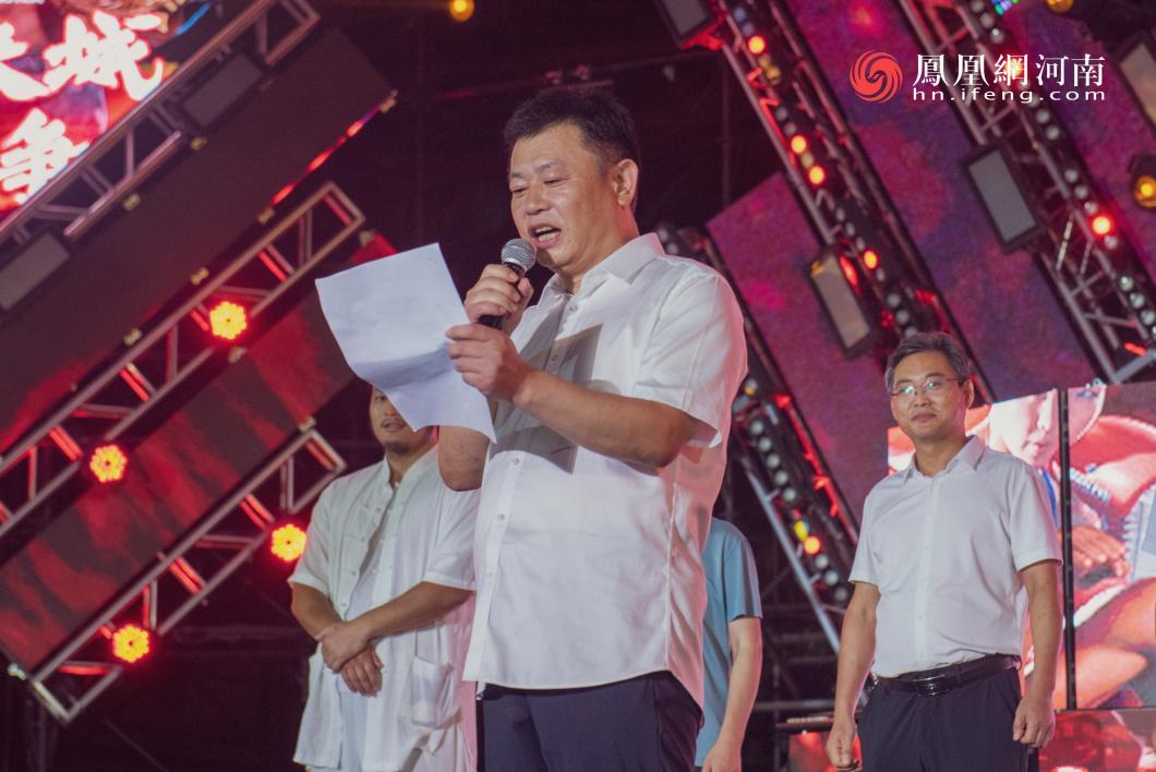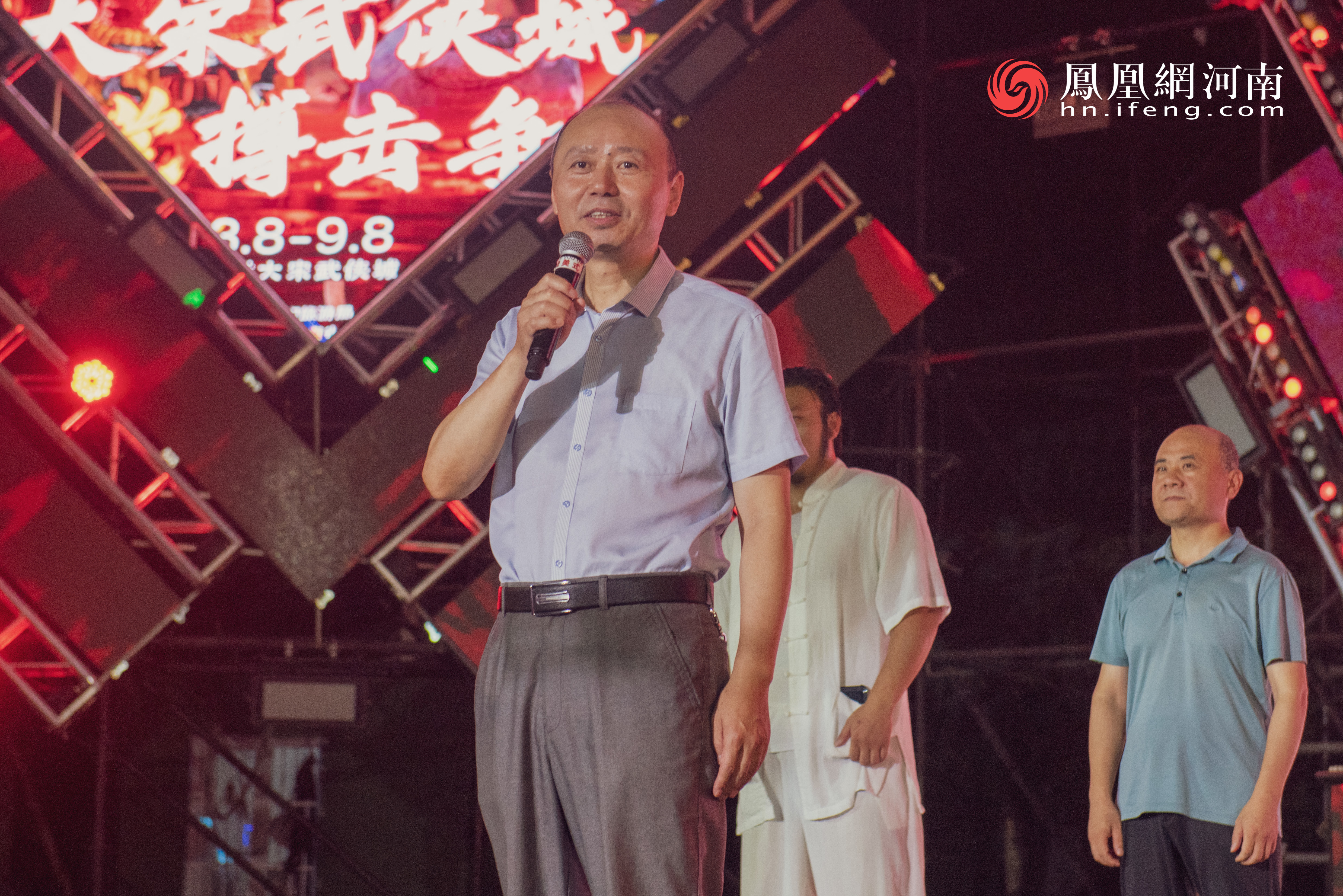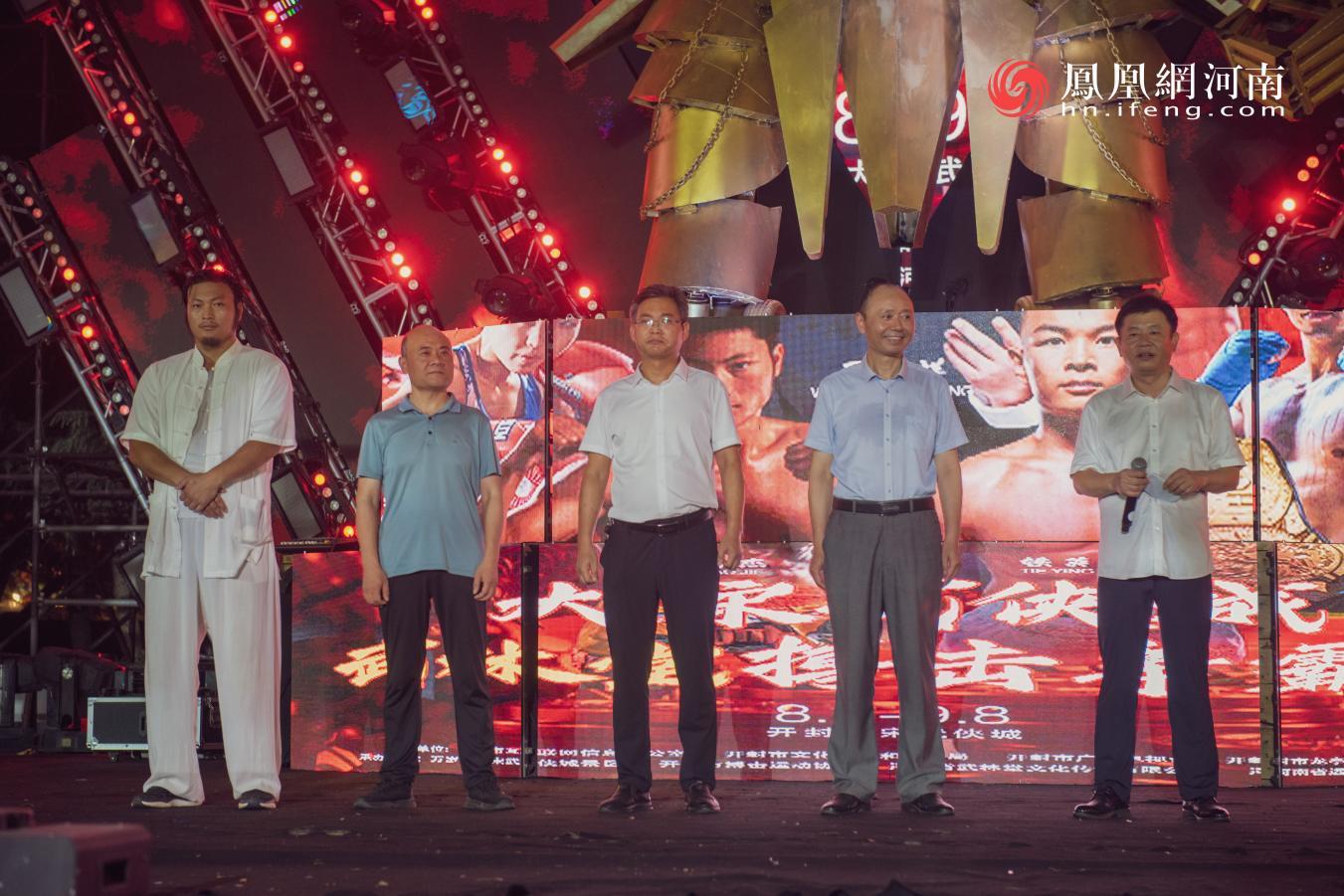 8月8日晚,2023年“大宋武侠城•武林堂搏击争霸赛”开幕式在大宋武侠城音乐广场成功举行。开封市文化广电和旅游局副局长李金国,开封广播电视台党委书记、台长左起超,开封市互联网信息办公室副主任孔存永和开封市龙亭区文化和旅游局局长宋晓磊等领导出席开幕式。