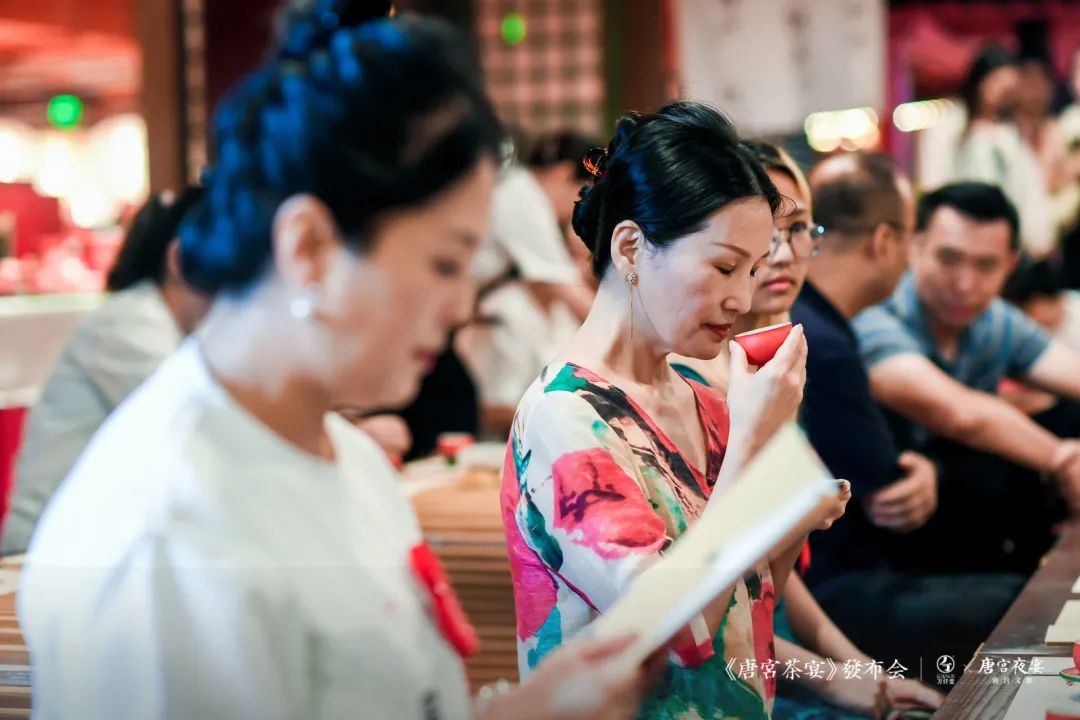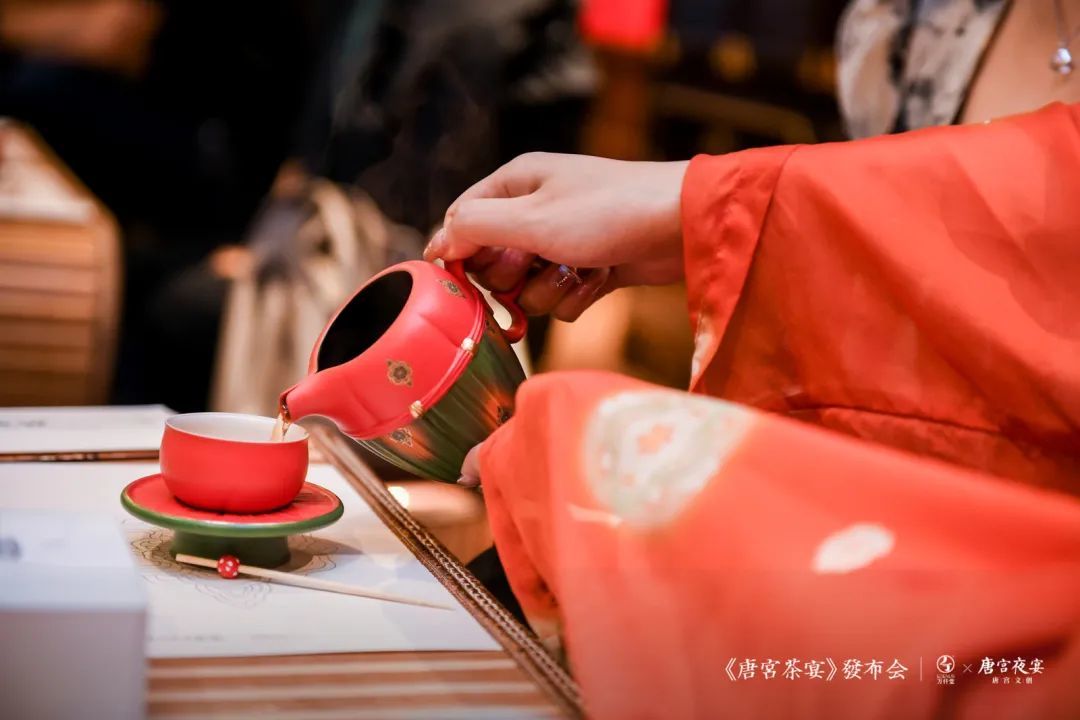 联名发布仪式结束后,进入“请茶时间”,嘉宾们一起鉴赏《唐宫茶宴》系列茶器,并品评茶艺,让人仿佛置身唐宫茶宴的现场,在乐女争奇斗艳,莺歌燕舞的欢乐气氛中,感受盛唐文化那穿越时空的生命力!给我们自己的生活,加点唐!
