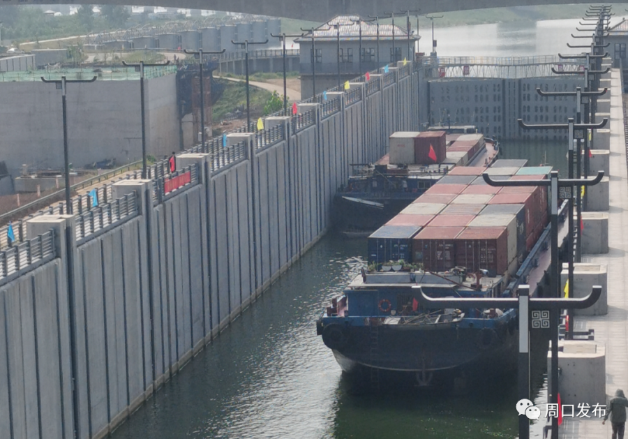 8月16日上午9时,来自周口港的两艘满载126标箱货物的货船(豫新海集217船、超漕运6666船)顺利通过江淮运河安徽寿县东淝河船闸,驶往芜湖港,标志着周口至长江途径江淮运河的新航线正式开通使用。