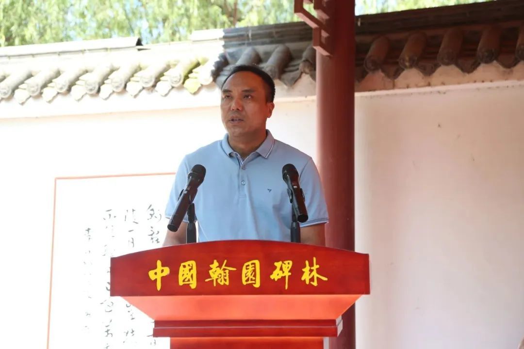 陈广胜致欢迎词,并表示:“中国翰园碑林作为全国唯一一座被中国书法家协会命名的‘中国书法名园’,弘扬中华优秀传统文化是中国翰园碑林始终不渝的目标,将促进青少年书画艺术发展视为己任。我们将不遗余力开展各类书法活动,将各类书法活动办的更好!”