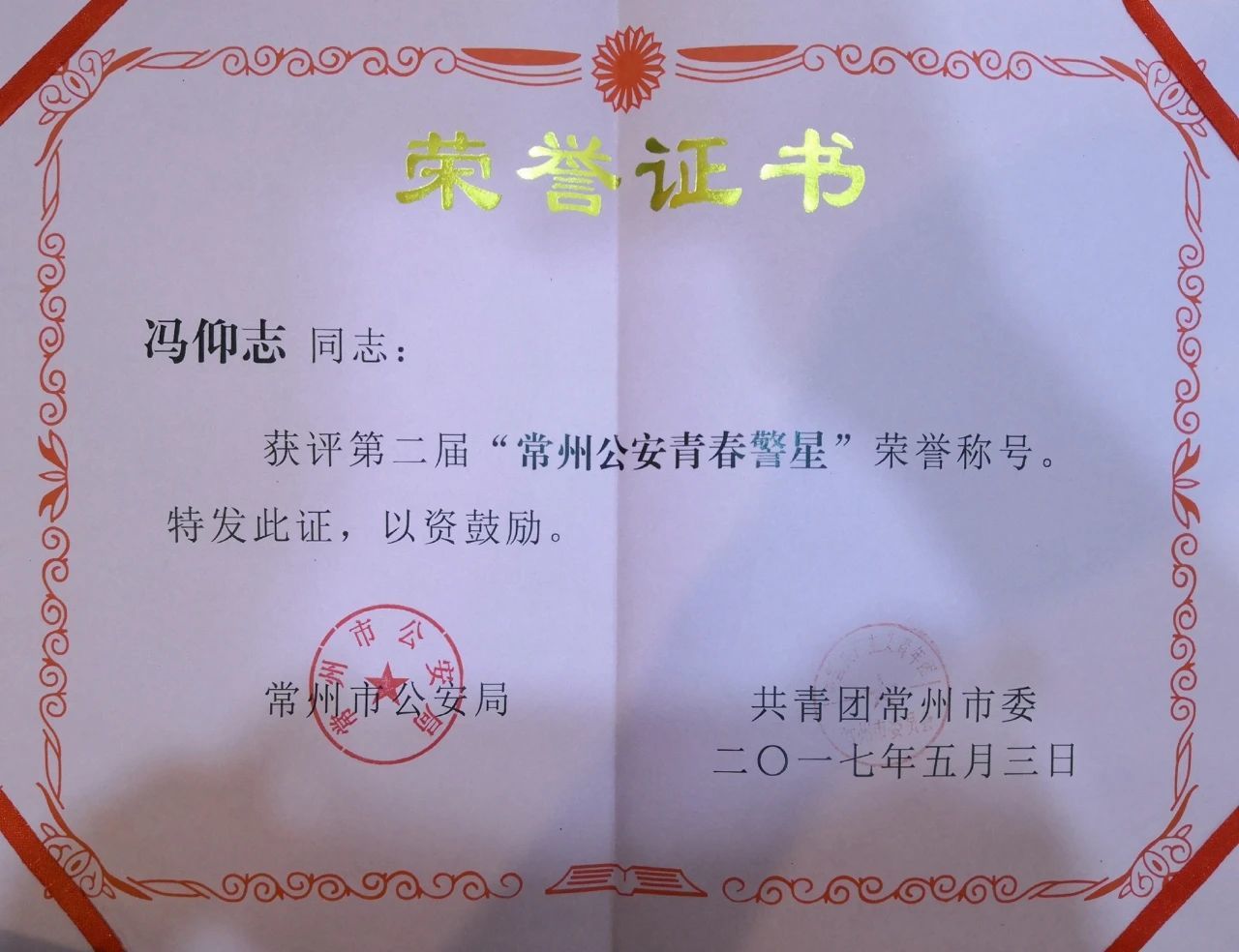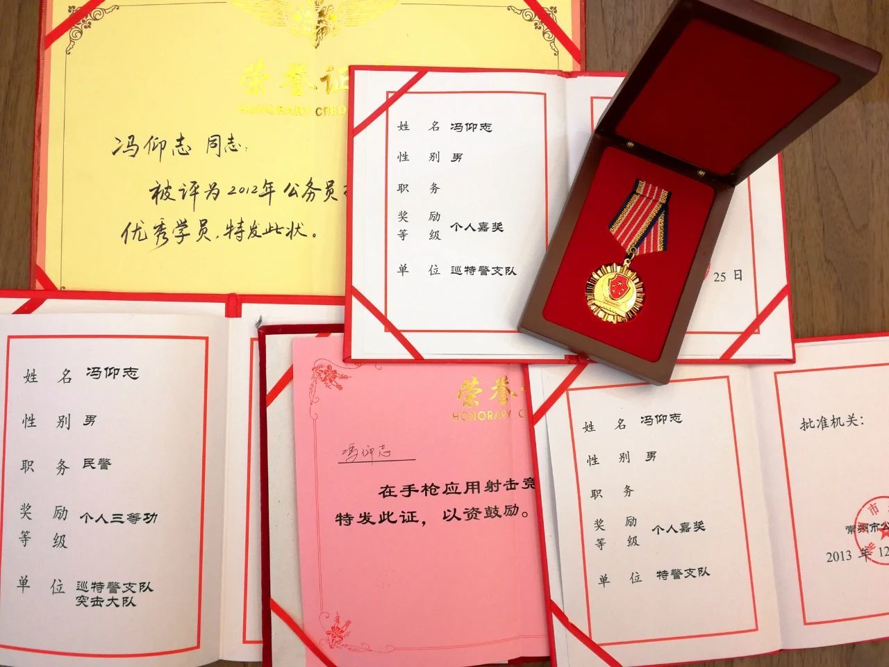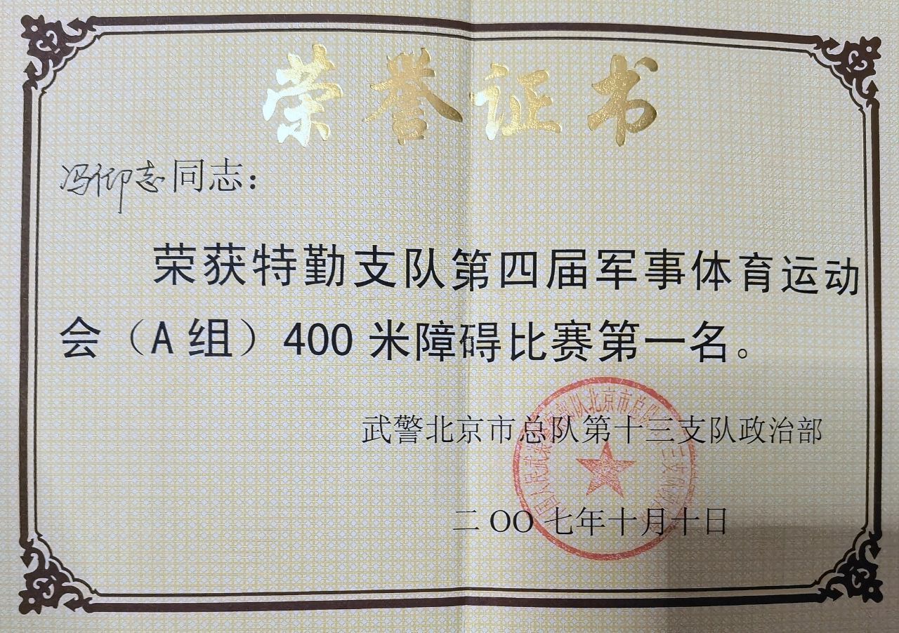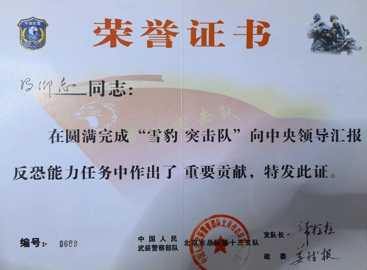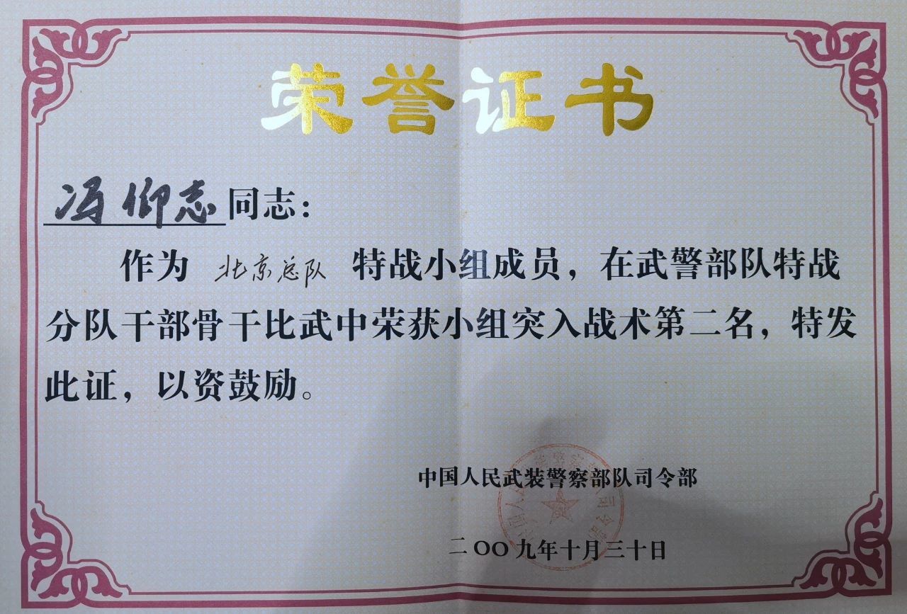 在部队与工作期间,相继参加了全国搏击教官培训(北京特警学院)、全国公安教官培训班(武汉警训基地)、江苏省教官培训班(苏州昆山)、全国空手道裁判员培训(北京体育大学),取得徒手控制与射击专业技能资质,并获得个人三等功2次(公安和部队各一次)、个人嘉奖7次和“公安系统优秀公务员”、“常州公安青春警星”荣誉称号。(康小孬 王梦博 王银贵)