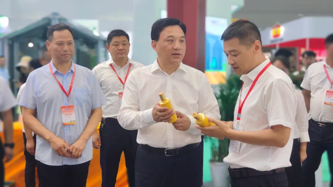 开幕式结束后,西平县委副书记、县长侯公涛等领导到豫坡酒业展区查看展示、展销工作。侯公涛表示,希望豫坡集团紧抓盛会机遇,积极推广产品,塑造豫酒、驻酒、西酒品牌形象,成功把豫坡酒业品牌推介出去,进一步推动酒业转型发展,为豫坡集团的高质量发展打下坚实的基础。