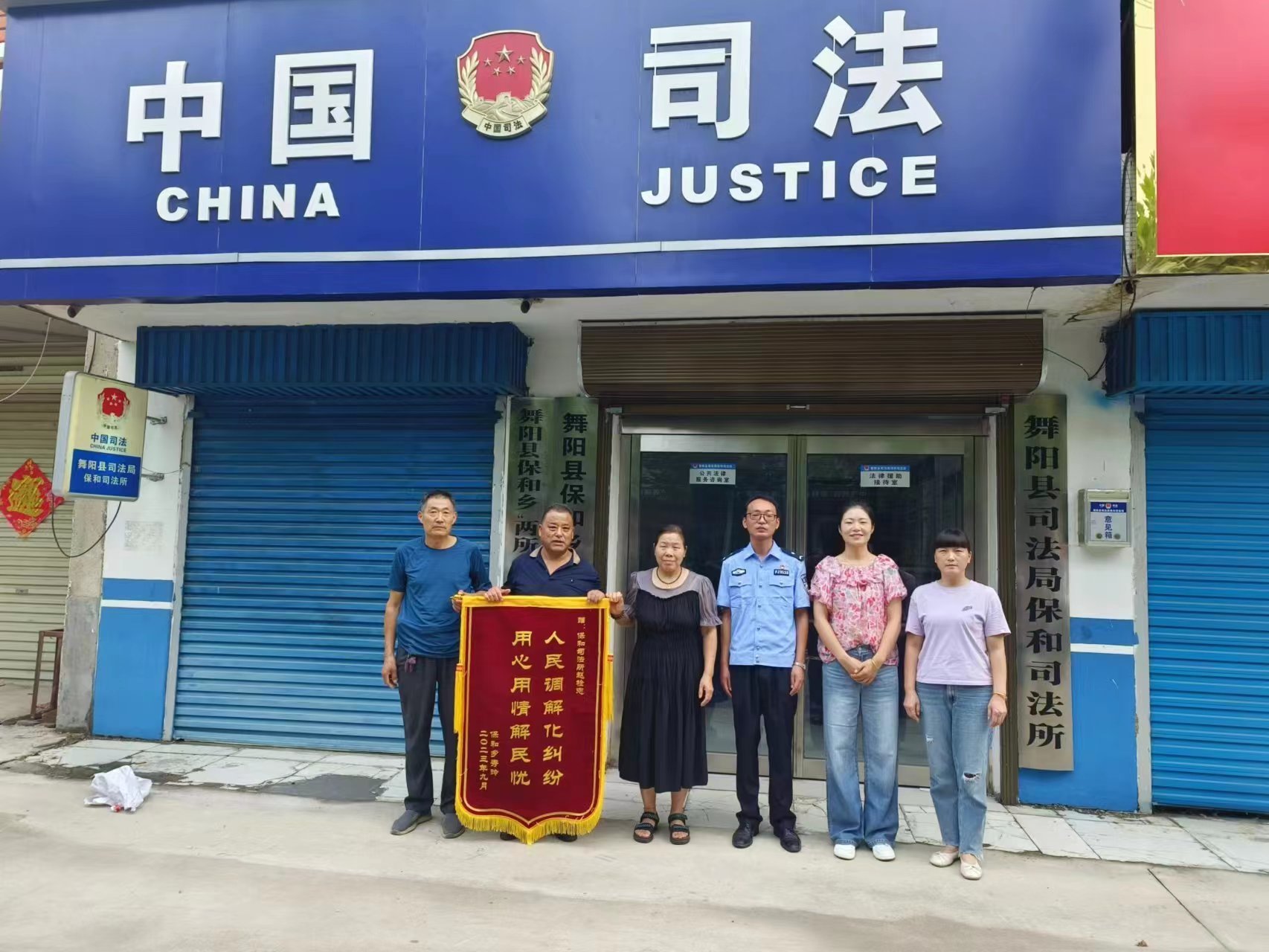 9月11日,殷女士将一面绣有“人民调解化纠纷,用心用情解民忧”的锦旗送到了保和司法所,以表达对调解员及参与同志为消费者高效维权、排忧解难的感激之情。