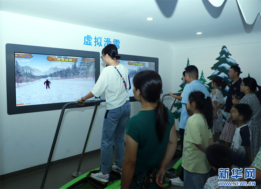 9月17日,在河南省南阳市科学技术馆,市民在模拟滑雪。