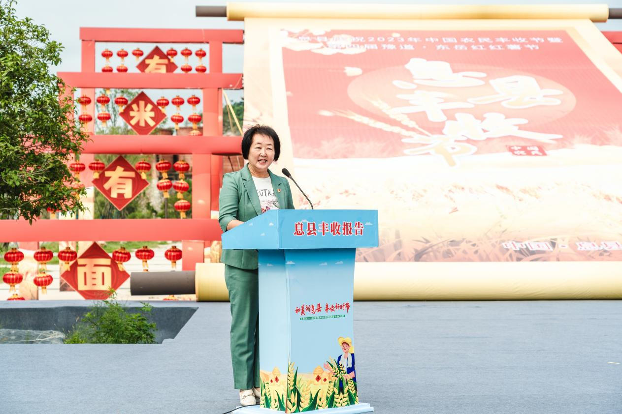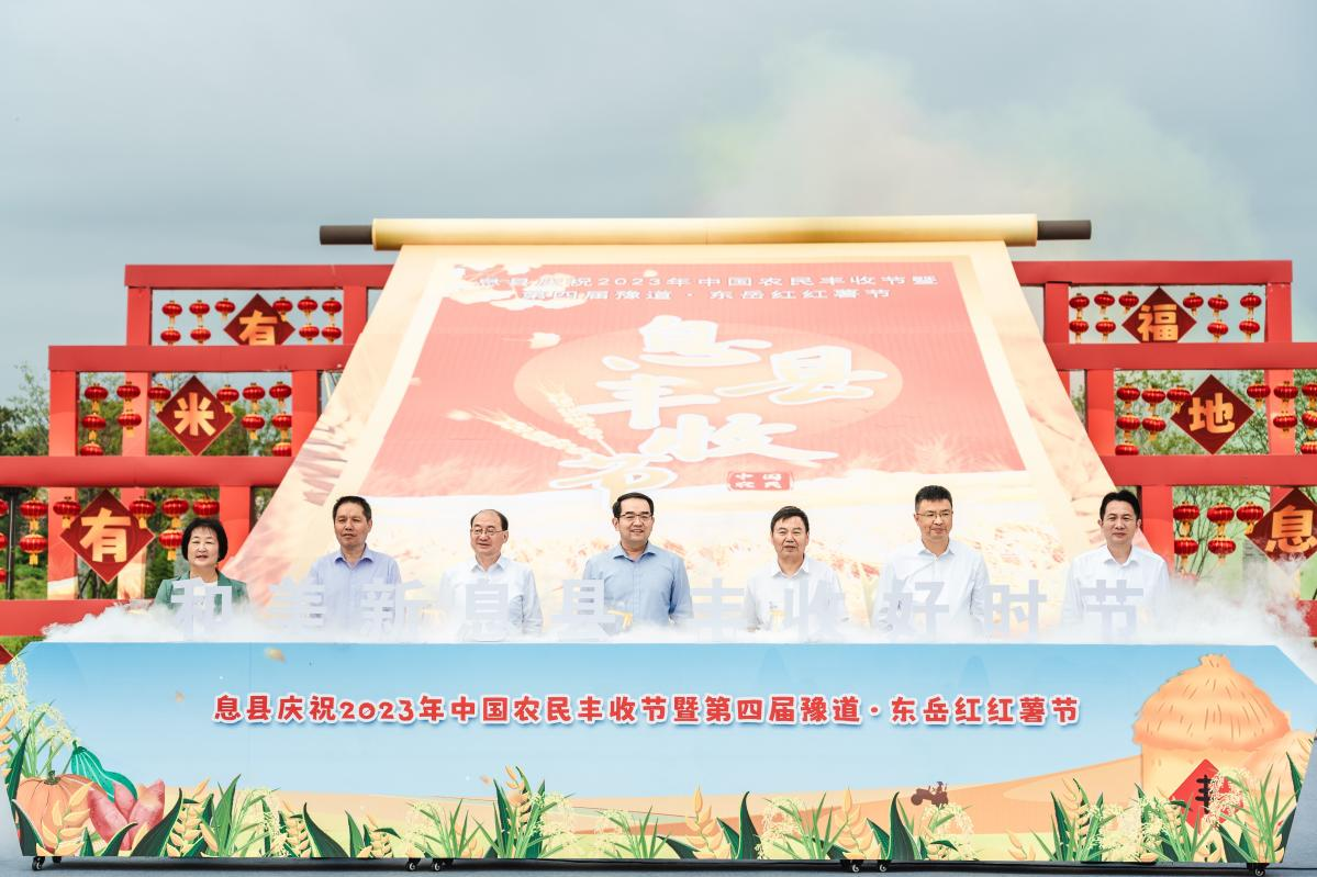 金秋九月,硕果累累,丹桂飘香。9月22日上午,息县庆祝2023年中国农民丰收节暨第四届豫道·东岳红红薯节在息县濮公山矿山公园游客中心广场盛大开幕。省农业农村厅党组书记、厅长孙巍峰、省商务厅原一级巡视员、河南省贸促会原会长谢增福、信阳市政协副主席周保林、息县县委书记管保臣、息县县委副书记、县政府代县长郑春出席开幕式。
