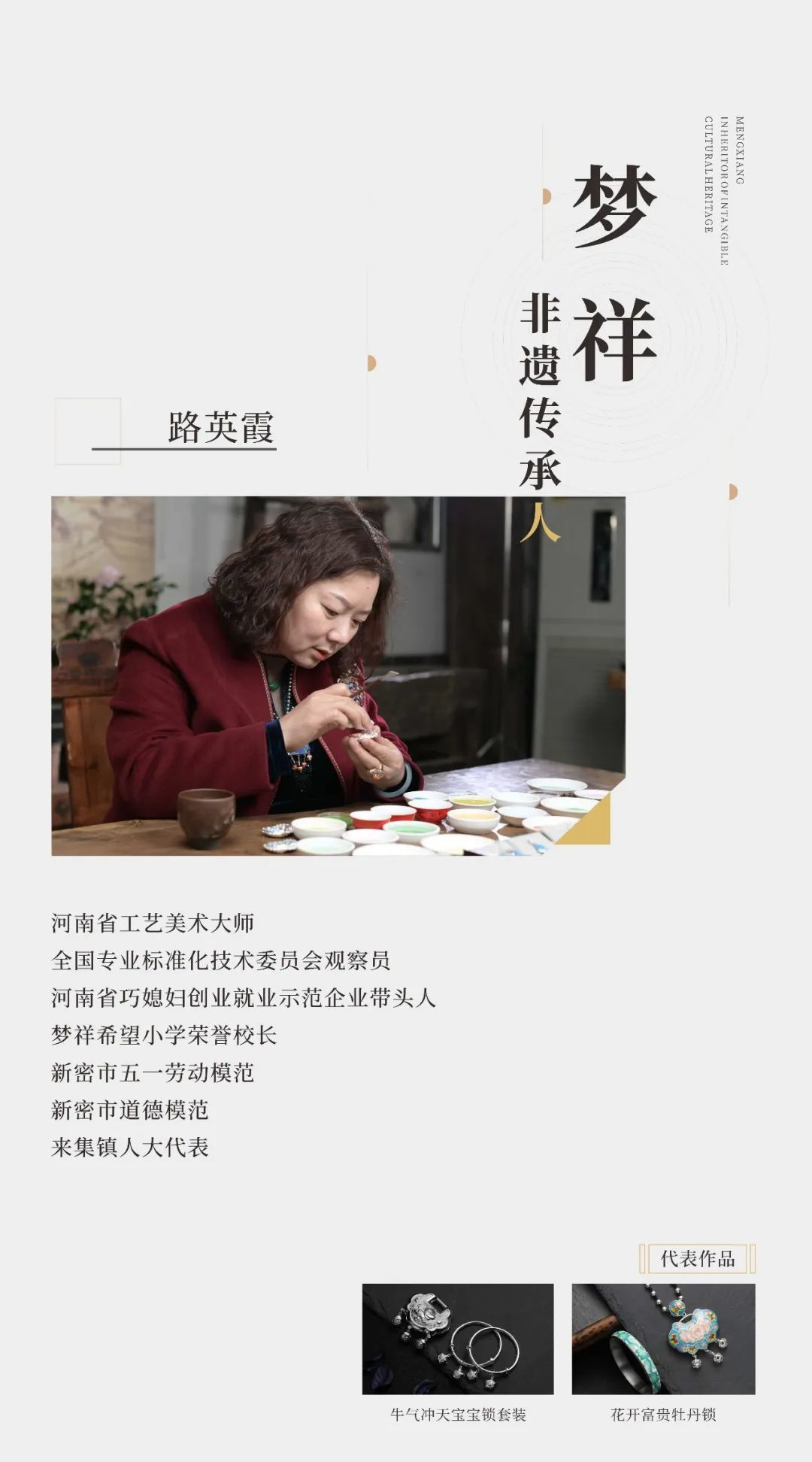 后又带领梦祥银胎景泰蓝、银胎画珐琅研发小组,研发银锁及配饰上彩、烧制等技术,先后发表过多篇专业论文。