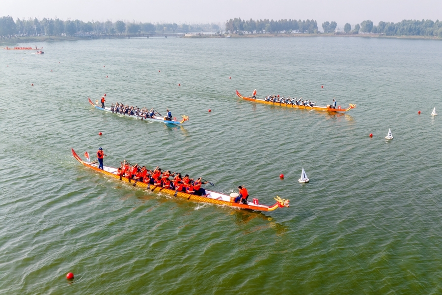 10月14日,河南省安阳市滑县千翠湖,河南省第十一届中华轩辕龙舟大赛总决赛暨滑县首届全民龙舟大赛现场。