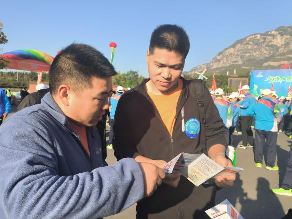在活动现场,“公益体彩 乐善人生”的蓝色摊拉格外显眼,来自河南体彩焦作分中心的体彩志愿者不仅宣传推责任彩票理念,还为参加活动的人员提供免费瓶装水、派发体彩知识宣传单。