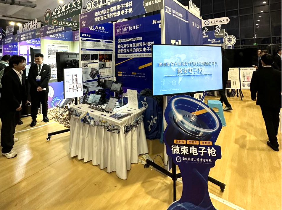 其中,斩获“挑战杯”国赛主体赛一等奖的参赛作品《面向复杂金属微零件增材微制造应用的微束电子枪》,是针对介观尺度(10^-4~10^-6m)这一特殊尺度范围,提出基于粉床的电子束增材微制造技术,开发出具备小尺度高能发射面的准宏观碳纤维灯丝材料,并基于此灯丝研制出微束电子枪器件,开发电子束增材微制造系统,为解决介观尺度复杂金属微零件制造难题提供技术与装备。该项作品荣获第十六届河南省“挑战杯”特等奖,并入围此次全国终审决赛,斩获主体赛一等奖。