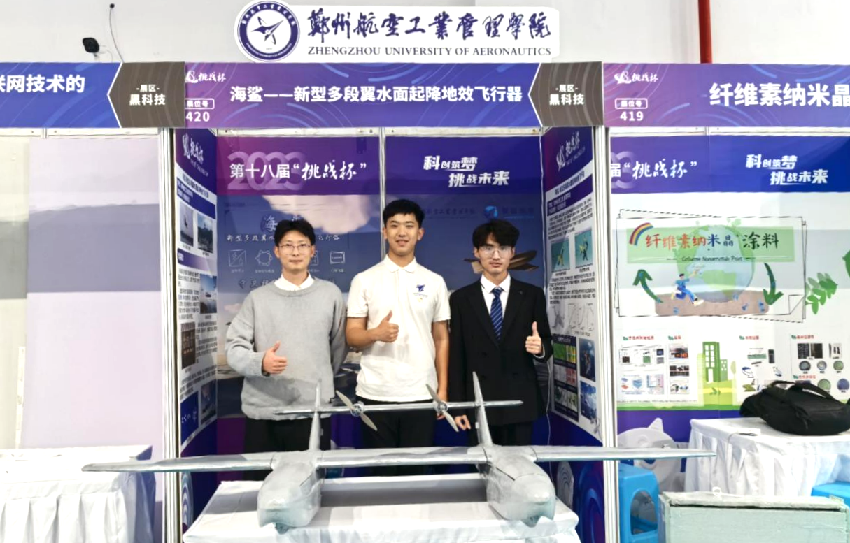 郑州航院其他获奖作品分别是:《镇南飞将——岛屿值守快速响应可变翼无人机》获国赛主体赛三等奖;《龙门飞甲——新概念空地一体化应急生命探测复合翼布局无人机》《天弦——可空中组合的翼稍链翼固定翼无人机》分获“挑战杯”全国“黑科技”展示活动“恒星级”和“行星级”作品奖。