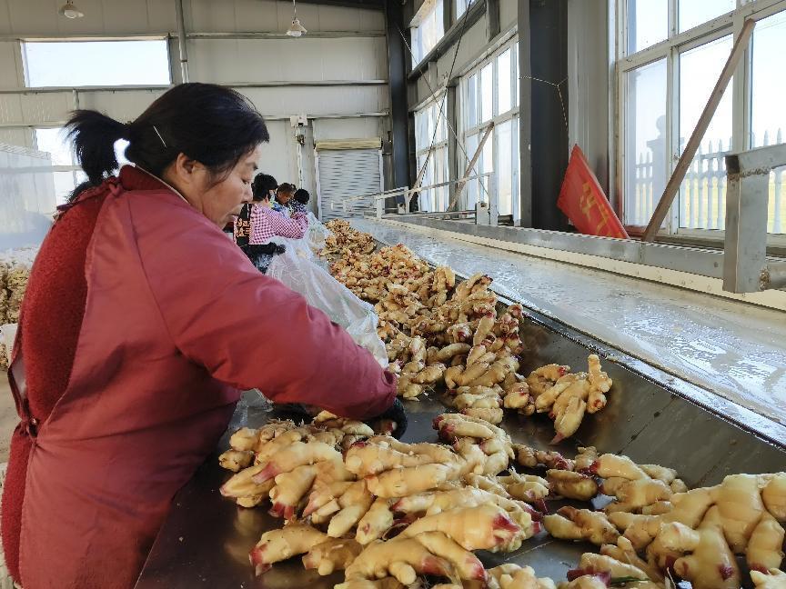 11月15日,在鲁山县张良镇飞建农业有限公司洗姜车间内,机声轰鸣, 20多名工人伴随着水流哗哗的节奏声,搬姜筐、洗泥姜、收净姜、除杂质、装袋(箱)子,有条不紊地忙碌着。