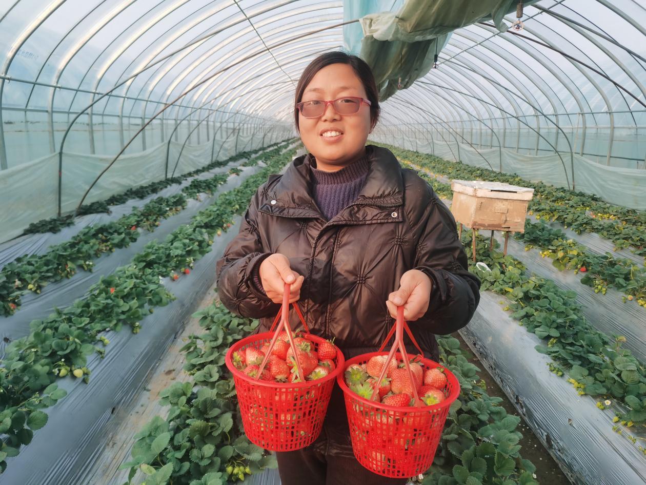 据了解,为提高草莓产量和甜度,种植户陈亚铬在草莓开花的时候每个大棚放置了一箱蜜蜂,蜜蜂可以帮助草莓花传粉,能够有效增加草莓的产量,提高草莓的坐果率。目前,棚里有宁玉、红颜、越秀等5个品种,一年四茬成熟期,主要通过游客进园采摘,体验采摘的乐趣。2023年,陈亚铬依托大棚种植经验,发展新思路,又承包了40多个大棚种植蔬菜,在提高自己收入的同时,也给村集体和群众带来了增收。