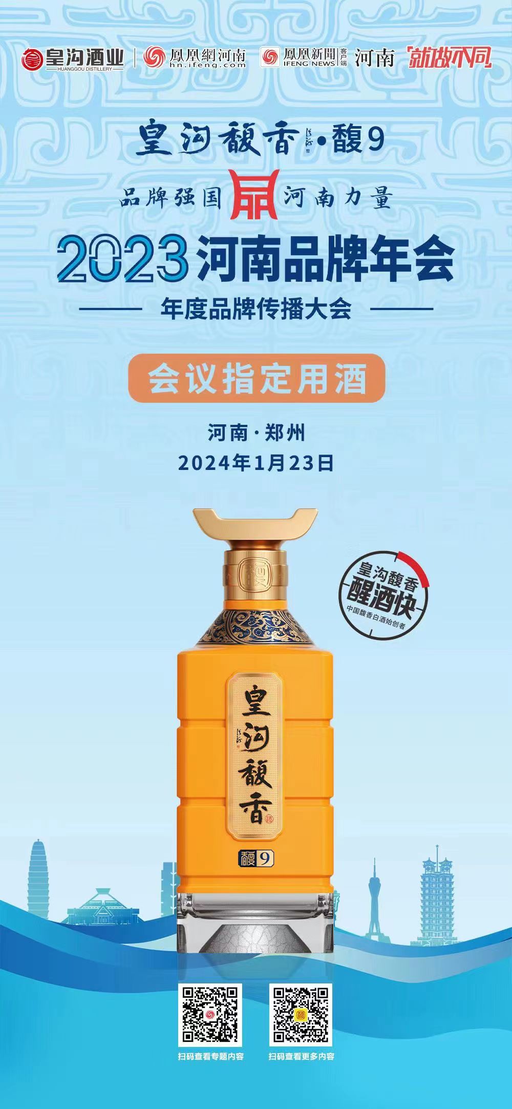 1月23日,2023河南品牌年会暨年度品牌传播大会将在河南饭店举行。届时,河南上市公司品牌价值榜、2023河南品牌百强榜、2023河南十大品牌、2023河南影响力品牌将发布。皇沟馥香作为本次活动的指定用酒,将与各大品牌一起共探品牌发展,共品豫酒芳香。