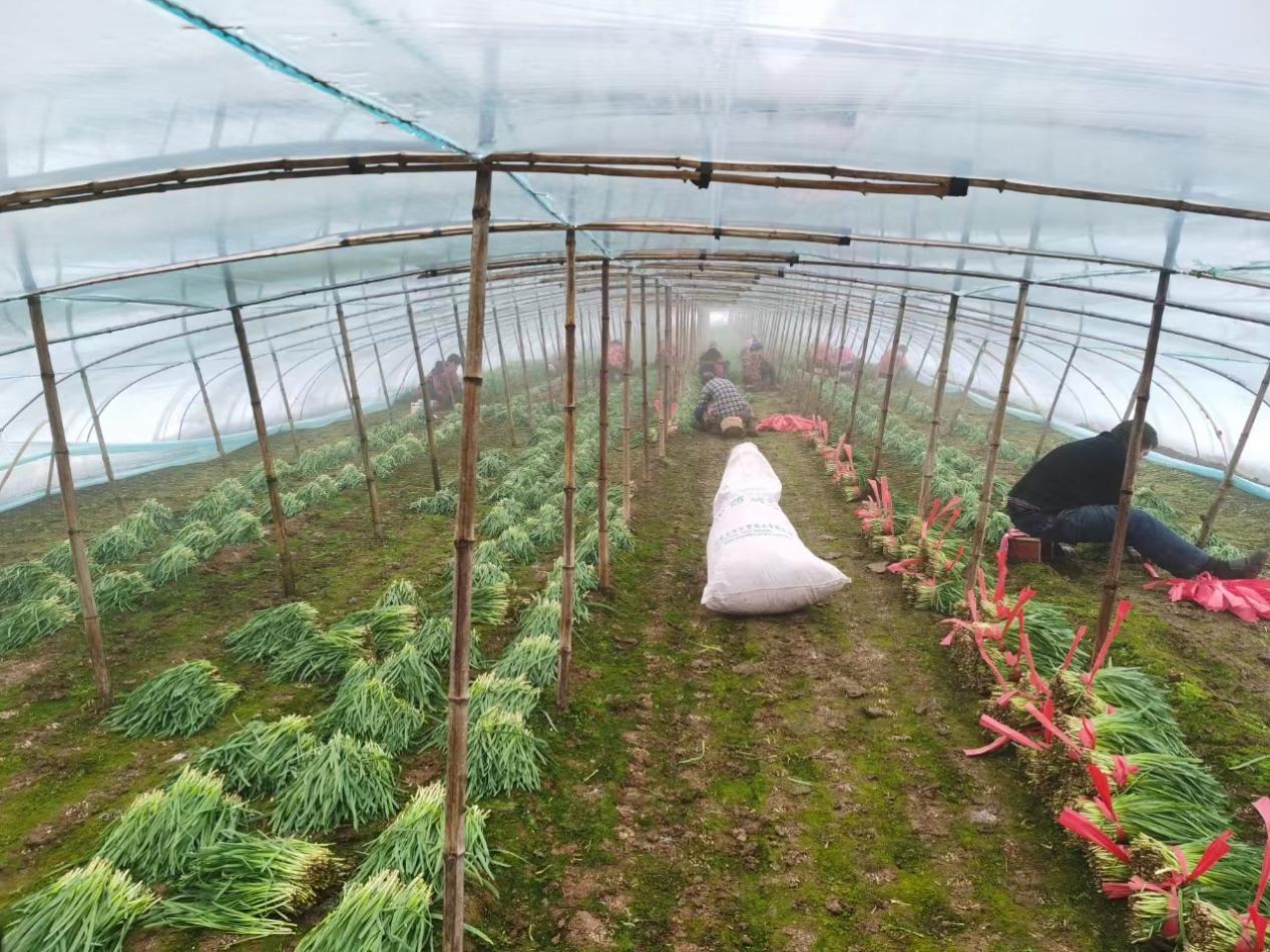 走进村民李超的韭菜大棚,看着长势喜人的韭菜,李超一边忙着手里的活,一边高兴地说:“我每年都有一个棚种韭菜,口感好、香气浓,同时易于管理、长势好、卖相好,每斤销售的价格在2元左右,亩产能达五六千斤。今年我的韭菜到过年时正好到收割期,又可以卖个好价钱了!”